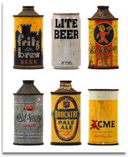 Este conjunto de latas de cerveja antigas foram colecionadas por dois amigos e designers da Califórnia, Lance Wilson e Dan Becker.
